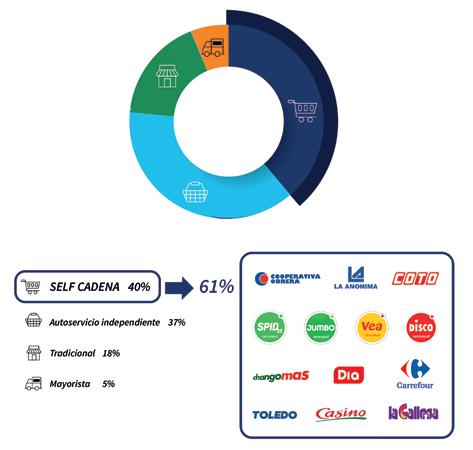 Cabe destacar que las cadenas de supermercados participantes representan el 61% del total del segmento denominado Self cadenas...