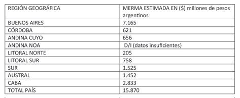 Los resultados informan una merma estimada en toneladas de 65440 toneladas, valorizada en $15.870 millones de pesos argentinos.