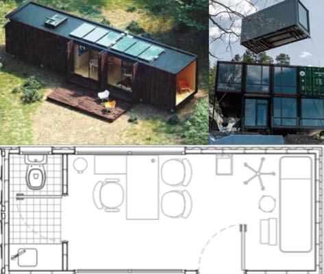 Ejemplos de transformaciones de contenedores, tanto para uso residencial como médico.