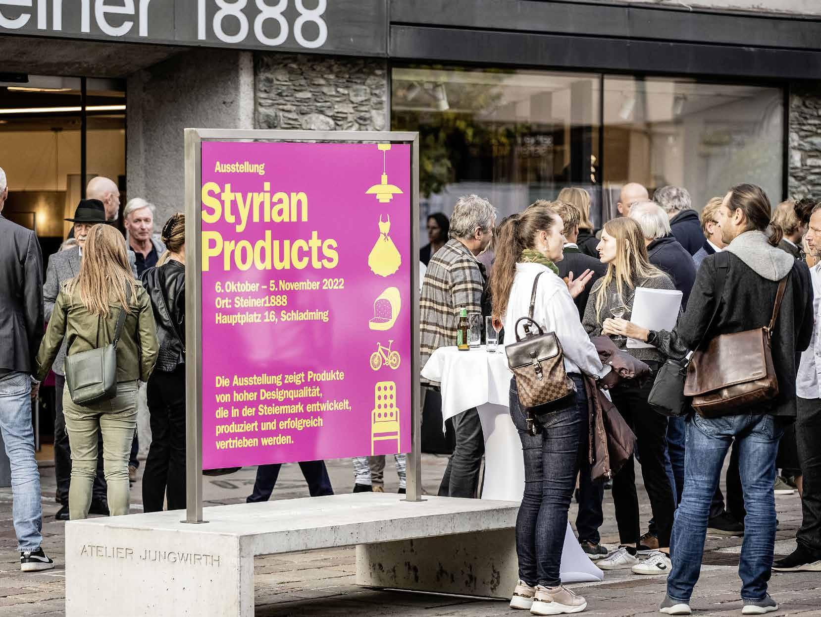 Die „Styrian Products“ sind damit Botschafter:innen für steirische Qualität und Innovationsgeist –für gutes Design und gelebte Kreativität. Regional, national und international. Die Ausstellung 2022 war bei Steiner1888 in Schladming zu sehen.