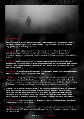 ideología dentro de Daesh es clave para el adoctrinamiento de los niños. En esta fase se encuentran expuestos a contactos con reclutadores u otros niños, propaganda, eventos públicos y similares.