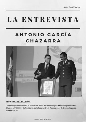 ANTONIO GARCÍA CHAZARRA Criminólogo. Presidente de la Asociación Vasca de Criminólogos – Kriminologoen Euskal Elkartea (AVC-KEE) y Ex Presidente de la Federación de Asociaciones de Criminólogos de España (FACE)
