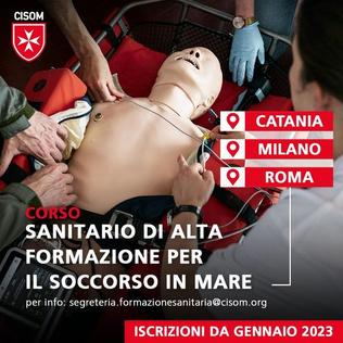 Dopo il successo delle tre precedenti edizioni, riparte il Corso sanitario di Alta formazione per il Soccorso in mare del CISOM, organizzato nelle città di Catania, Roma e Milano; nello specifico, il Corso si svolgerà a Catania dal 27 al 29 gennaio 2023, nella città di Roma dal 24 al 26 febbraio ed infine a Milano dal 24 al 26 marzo 2023 I docenti, medici specialisti con alle spalle diverse missioni con il CISOM nel Mar Mediterraneo per la primissima assistenza in mare ai migranti, hanno ampliato la parte pratica, aggiungendo un'ulteriore sessione dedicata allo svolgimento sui simulatori delle manovre salvavita, la cui padronanza risulta essere fondamentale nelle missioni in mare