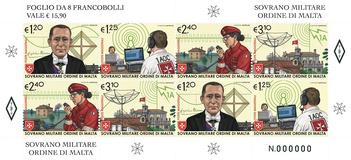 Il secondo francobollo da € 1,25 raffigura la sala operativa della stazione radioamatoriale 1A0C del Corpo Italiano di Soccorso dell’Ordine di Malta, con due operatori intenti a trasmettere Completa la vignetta una raffigurazione stilizzata di un’antenna radio; il terzo francobollo da € 2,40 raffigura una volontaria del CISOM all’apparato radiotrasmittente in occasione di una calamità naturale Sullo sfondo: la scena di un’alluvione e la rappresentazione di un’onda elettromagnetica