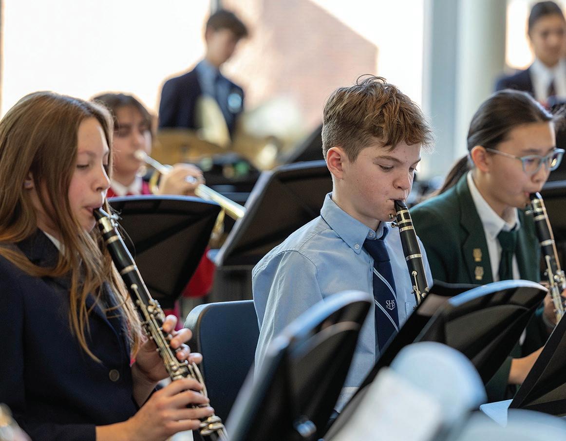 Music plays a central role in shaping our students' understanding of self and the world. Our comprehensive music program fosters creativity, critical thinking and resilience, allowing students to discover confidence and self-expression. The music program is deeply integrated in our curriculum, designed to evolve with students throughout their years at BSS. All students participate in our music program beginning in Junior Kindergarten. It is required to continue music education through to Grade 8. This lays the foundation for students’ musical journey. As students progress, they have the option to join the Junior Choir in Grade 4 and explore band or strings starting in Grade 6. Their musical journey continues into Middle and Senior School, where students can develop their skills by participating in various ensembles such as: String Ensemble, Concert Band, Jazz Band, Senior Choir, Middle School Choir and Chamber Choir.