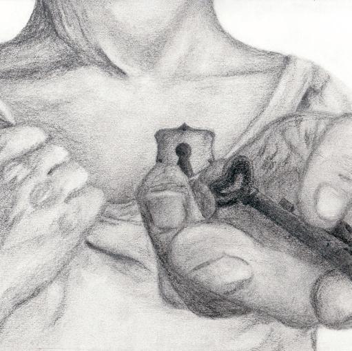 As I’m walking to school, I observe everything around me. I watch as the garbage trucks empty a garbage can lled with cigarettes. I watch how the boy next door is being bullied, again. I smell the acrid smoke, and alcohol. My brain is telling me to keep going, but my heart reminds me that I have nothing to go for