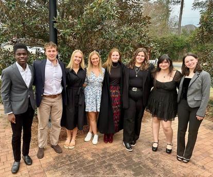 Successful Homecoming Day festivities concluded in an Upper School Pep Rally, where the homecoming court took part in a football throwing contest Seniors Peden Brabham, Elizabeth Cannon, Chandler McNair, Logan Rivers (Represented by Ali Dorrington), Grace Webb, Sophia White, Jack Croft, Immanuel Johnson, Brewer LaMotte, Theodore Lumpkin, Drew McCall, Thomas Young were elected to the court by the class of 2025. Teams Brewer LaMotte/Ali Dorrington and Jack Croft/Chandler McNair tied for first with a total of six successful footballs made in the target. The week ended how it started with a final Skyhawk Cup challenge. The Upper School raced by sliding on mattresses across the gym the juniors were victorious.