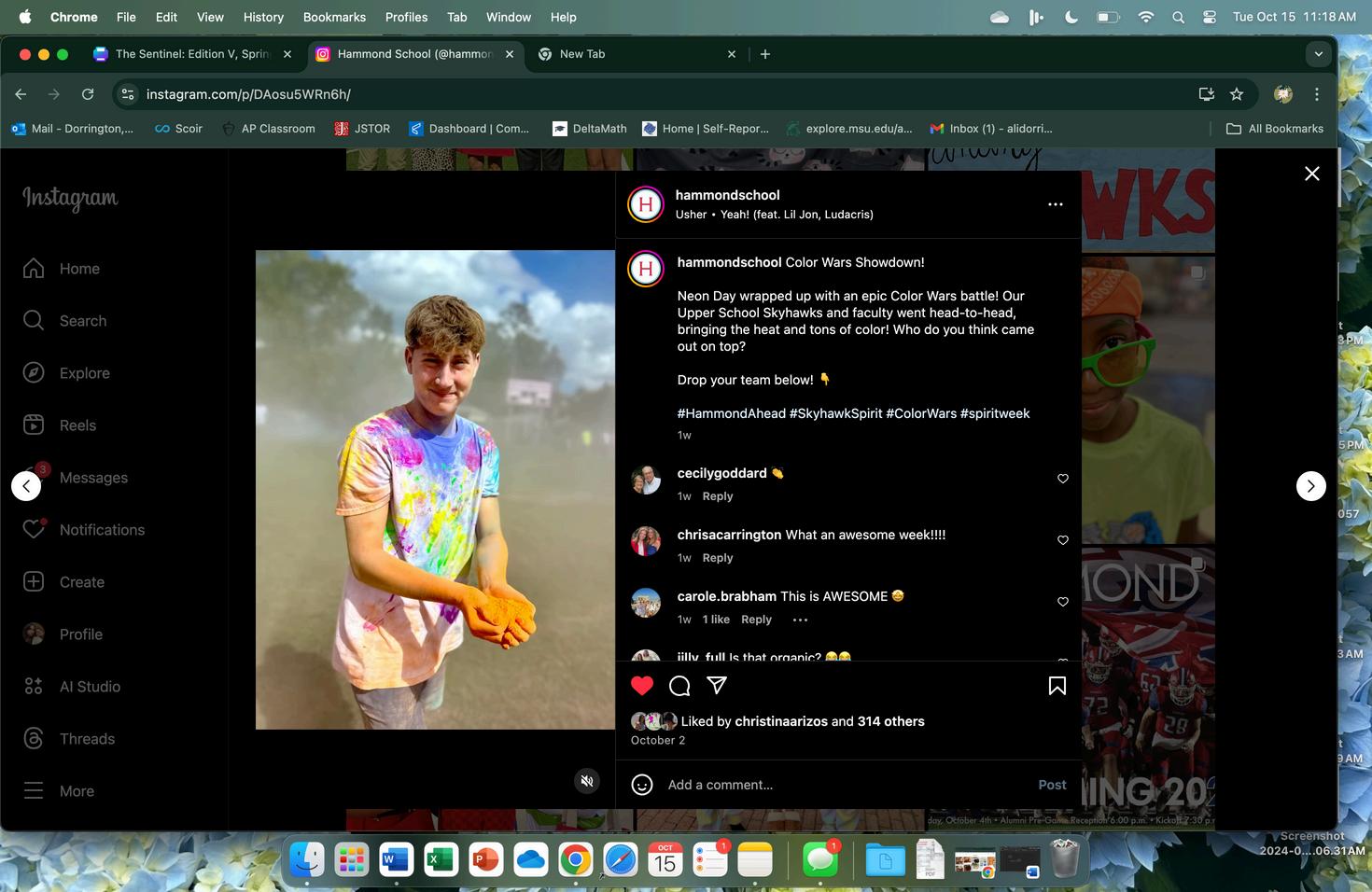 Wednesday’s theme continued to brighten up the week as students were decked out in head-to-toe neon. Most chose to show their bright colors through construction vests and knee-high socks. Neon Day ended most appropriately with Color Wars. Upper School students met on the “Rock” practice field where each grade battled for victory. No winner was named, but Mrs. Riley (Honors Probability & Calculus/Geometry) was a definite victim, as she was bombarded by the senior class and their yellow powder Thursday rolled around and Hammond School embraced its southern culture with Boot Scootin’ Boogie Day. One might think the rodeo came to town with the sounds of boots clicking down the halls and students in overalls.