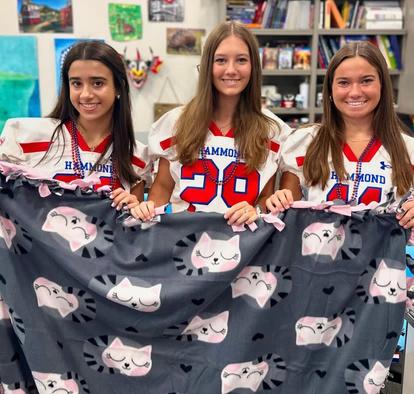The Linus Club- Drew McCall and Hailey Inman (both class of 2025) have brought the national Project Linus Organization to Hammond. The Linus Club is a service group that will make blankets for schools, first responders, and anyone else who needs them. They make no-sew blankets by taking two sheets of fleece, cutting the corners, and knotting them together Whether you are a member or not, you are welcome to participate in their service days. The club plans on having two or three major service projects throughout the year, and the blankets made during those will be donated to the Columbia chapter of the Project Linus Organization.
