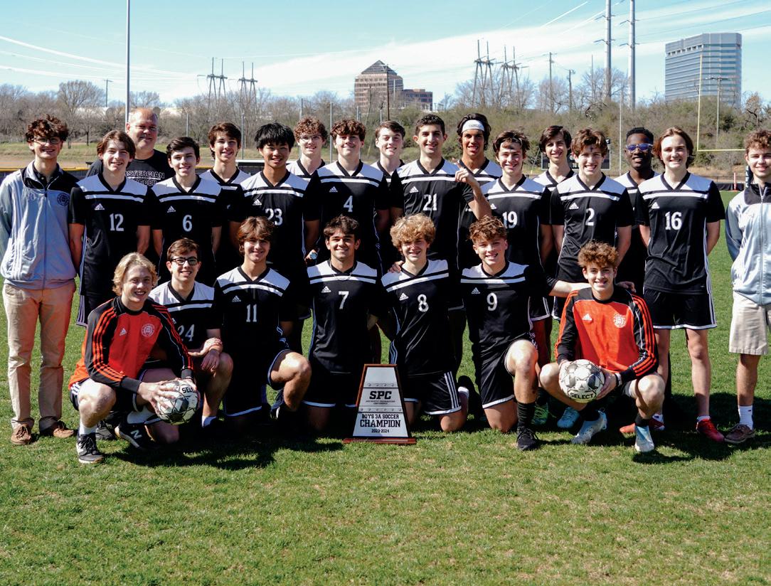 “The boys took pride in earning shutouts. The entire team was committed to defending as a unit,” said Walsh. The Hawks’ defense was recognized by the Dallas Morning News as the best in the Metroplex. Senior captain Michael Peterman ’24 and sophomores Jacob Liu ’26, Raad Nino ’26, and Patrick Sporl ’26 made up the back line, and freshman Mateo Maalouf ’27 proved unbeatable in goal. The workhorses in the midfield were Marc Maalouf ’25, Dean Nevitt ’26, and Alberto Macher ’27. Up top, the strikers were senior captain Patrick Garda ’24 and sophomores Dylan Kowalski ’26 and Andrew Novoa ’26. To repeat as champions, the Hawks beat ESD and FWCD.