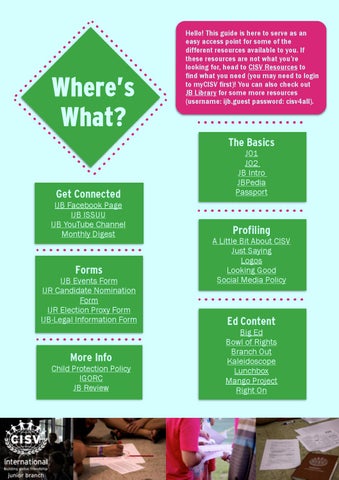 Hello! This guide is here to serve as an easy access point for some of the different resources available to you. If these resources are not what you’re looking for, head to CISV Resources to find what you need (you may need to login to myCISV first)! You can also check out JB Library for some more resources (username: ijb.guest password: cisv4all).