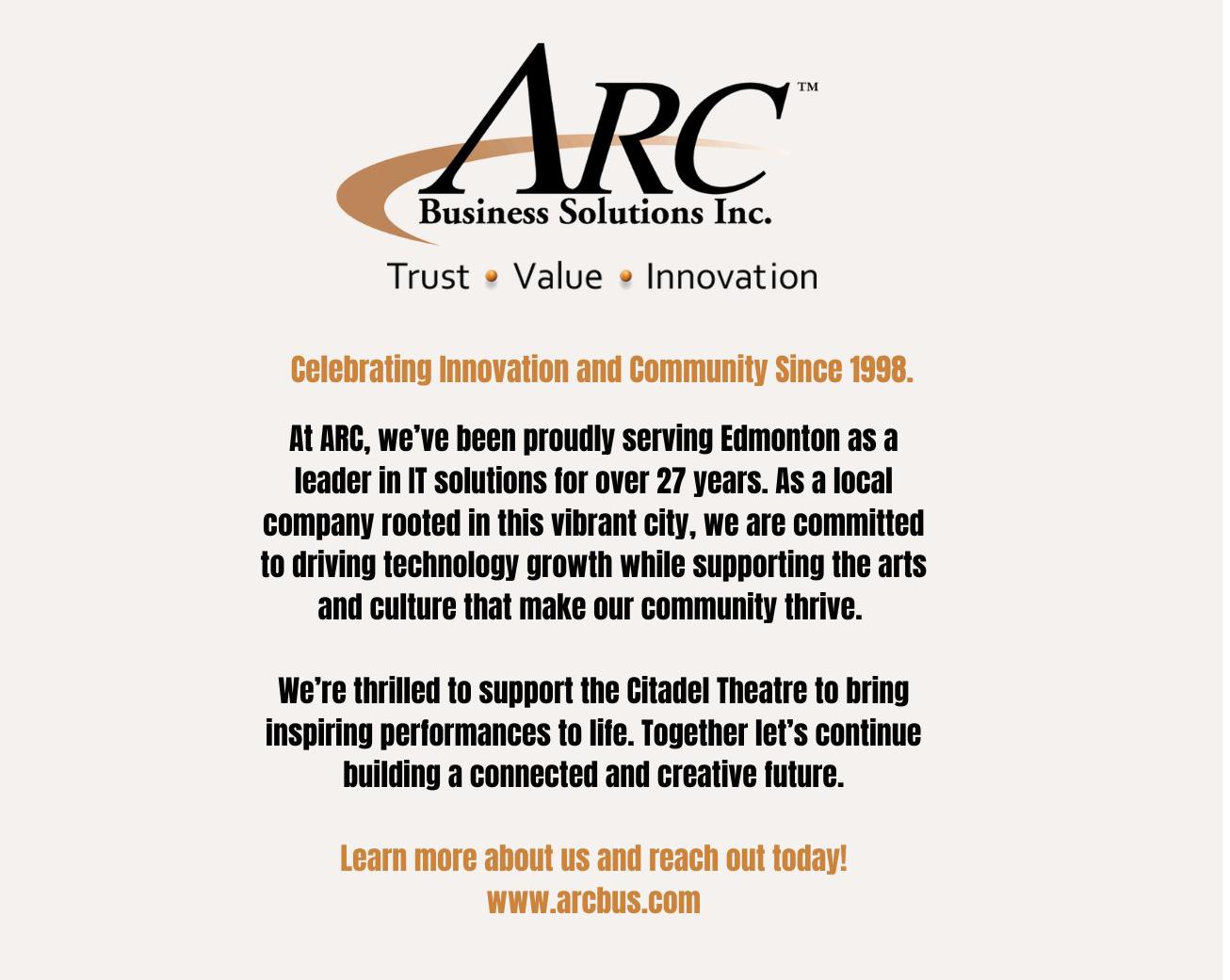 Our heartfelt thanks go to the hundreds of local artists, designers, craftspeople, technicians, stage managers, and staff whose artistry and dedication make this production possible. And thank you, once again, for celebrating the season with us. Your presence keeps the spirit of theatre alive at the Citadel throughout the year.