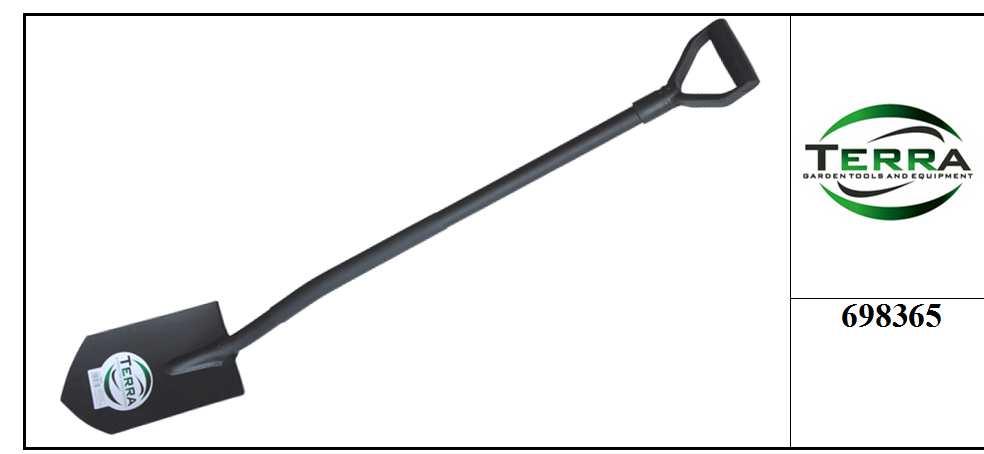 Durkļa lāpsta, taisna, metāla, ar ergonomisko kātu ovāla profila un D-rokturi Lāpstas gals no rūdīta tērauda, biezums - 2 mm, HRC 35-40; melns matēts pulvera pārklājums; roktura biezums 1.5 mm;