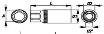 12-ти гранная головка, удлинённая, 1/2"