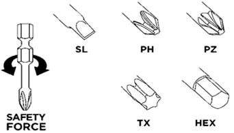 PH2, PH3, PZ1, PZ2, Torx T15, T20