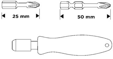 Комплект насадок В комплекте: держатель для насадок 60 мм, SL 4.5-6 mm, PH1, PH2, Torx T15, T20
