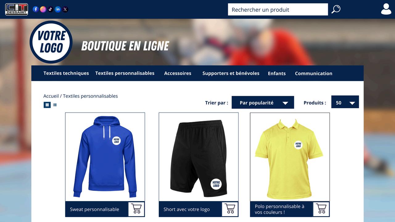 Nous faisons appel à leurs services pour la confection des maillots et shorts de matchs mais aussi pour divers produits (gourdes, casquettes, tee shirts, sweats,...) car ils ont une large gamme de produits.