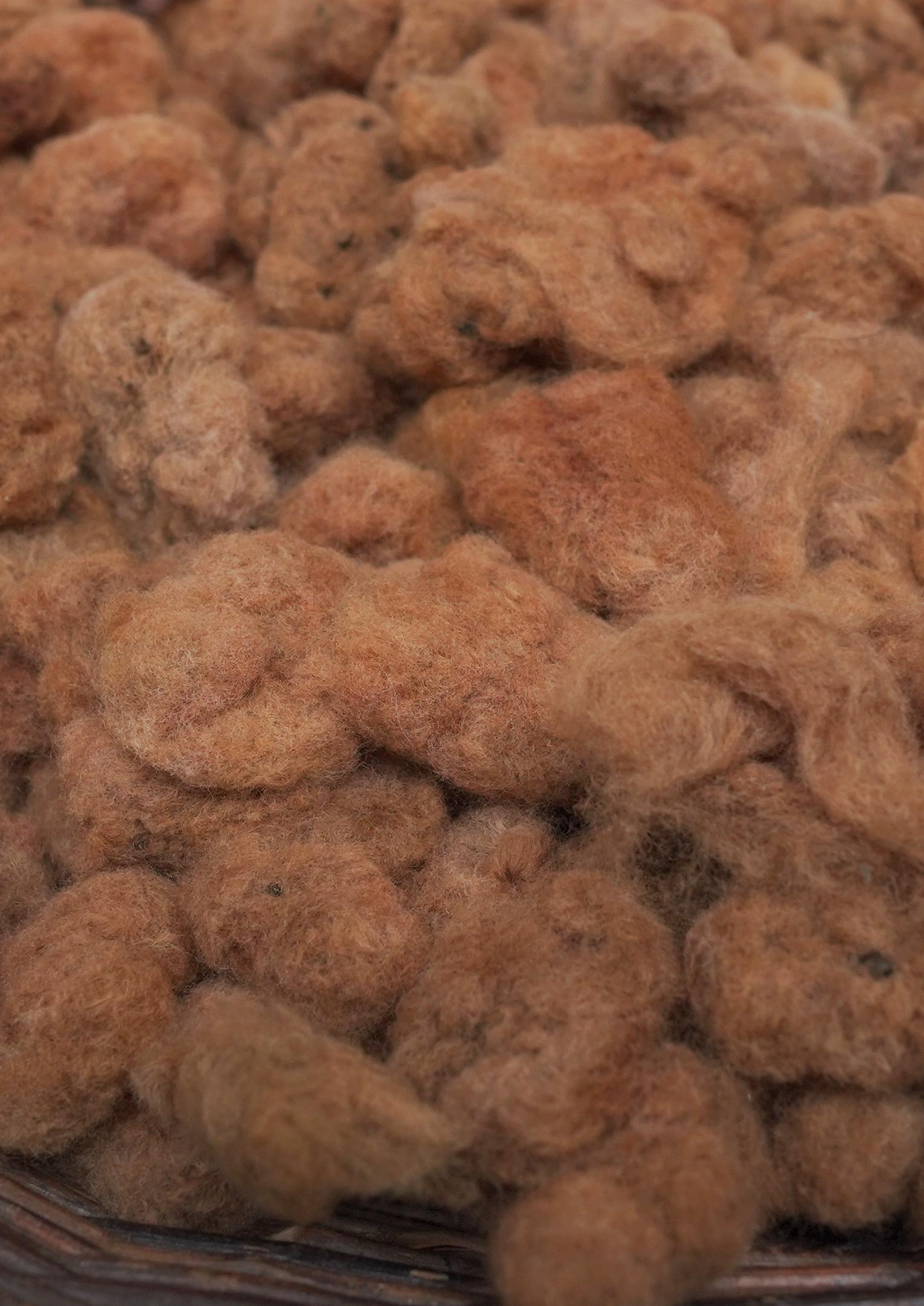 Se tiene como insumo principal el algodón nativo, planta originaria de la costa peruana utilizada por los antiguos lambayeque