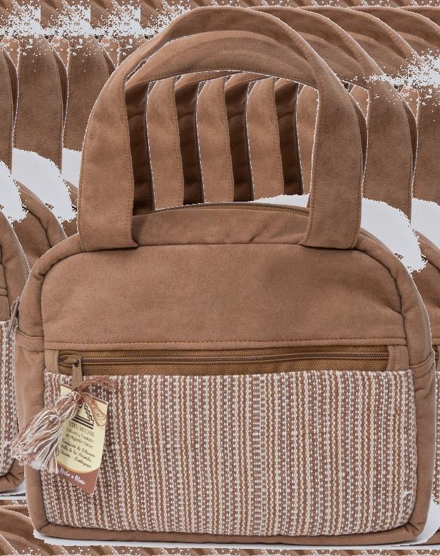 Lonchera de algodón nativo con tela de cuero. Telar a cintura.