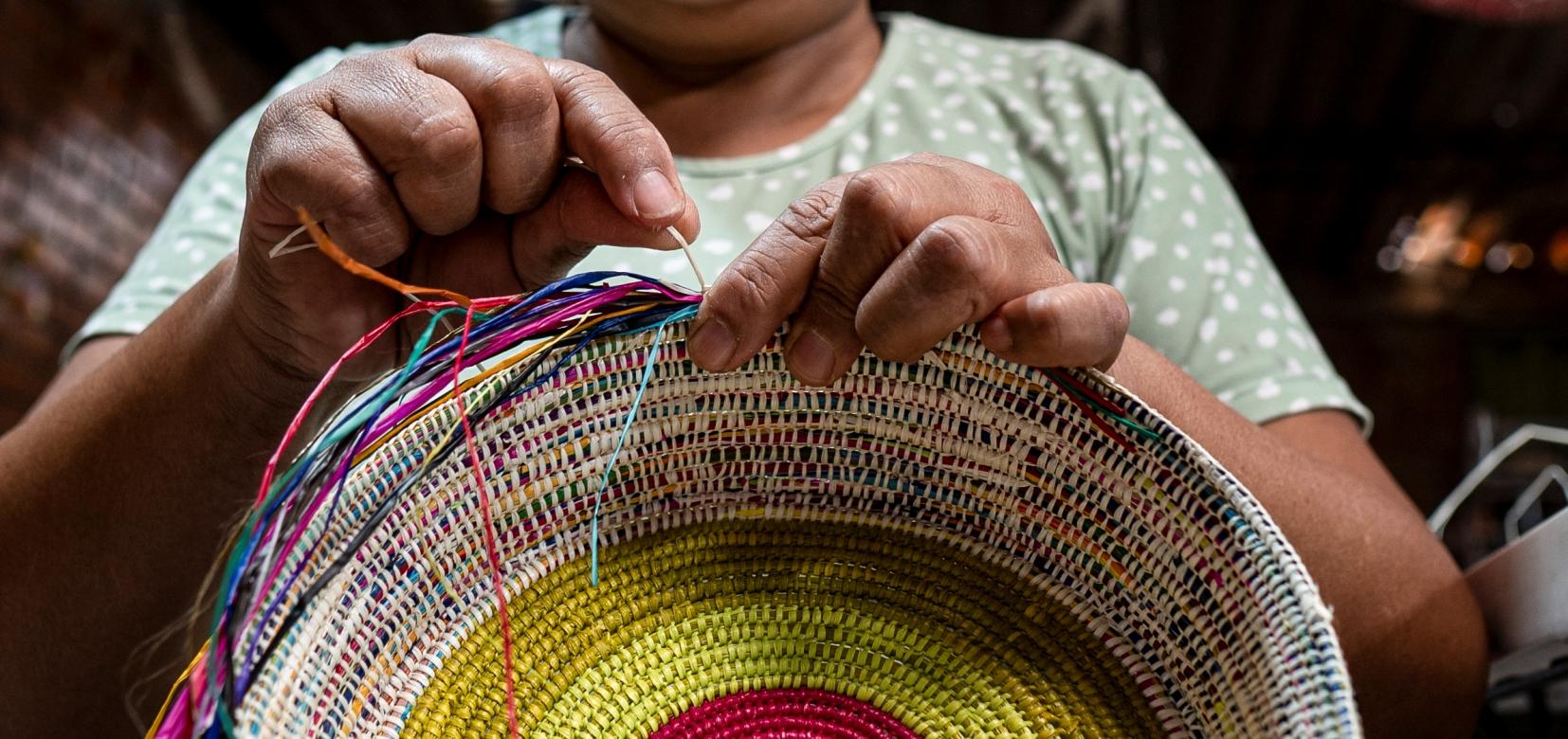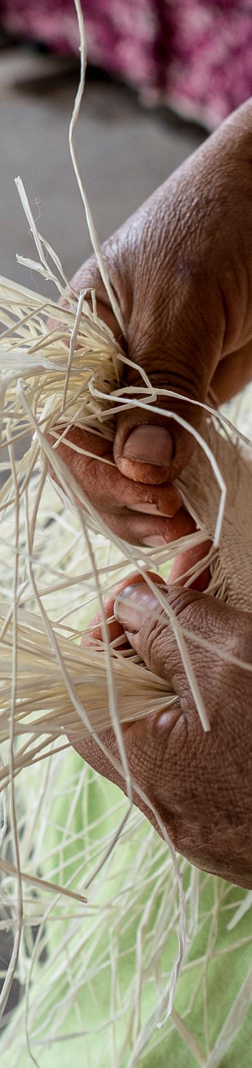Se trabaja la fibra vegetal de la paja palma. Son mujeres con experiencia en este arte, que se capacitan constantemente y son reconocidas a nivel regional y nacional.