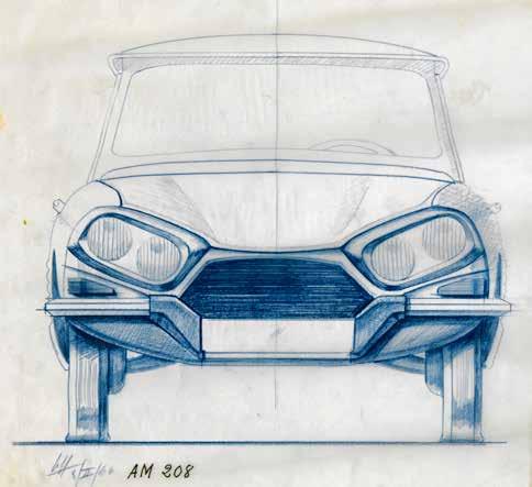 1965 et 1966 : Roger Opron définit les grandes lignes (au dessus) et Michel Harmand élabore les détails du design (en dessous). Il n’est pas clair si ces esquisses étaient destinées à un restyling de l’Ami 6, ou pour lancer des premières idées pour une version luxueuse « Club », qui, plus tard, allait recevoir également quatre phares ronds.