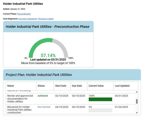 Using AchieveIt’s project management software as the central platform, departments can visualize progress across major focus areas, including capital projects, budget execution, community engagement, and operational efficiency.