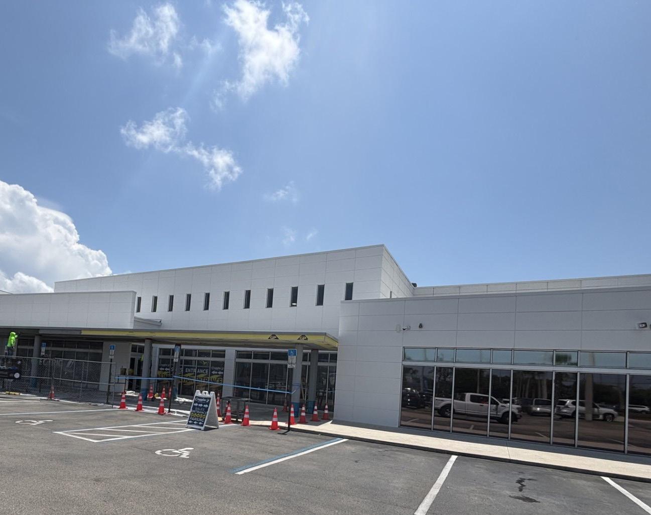 A major renovation is underway at Coggin BMW. The project includes both interior and exterior renovation of the existing automotive dealership with an attached service shop and second floor office space. The renovation includes new finishes, ceilings, casework, and furniture. The exterior aluminum composite materials (ACM) panels have been demolished and replaced with an exterior insulation and finish system (EIFS) that provides a finished, insulated and water resistant surface. The EIFS work was being done while these pictures were being taken.