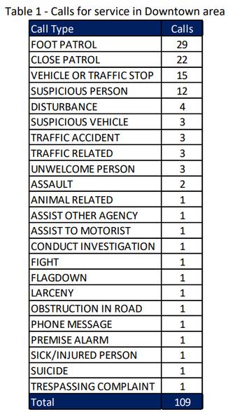 During the month of August 2024, there were a total of 24 FPRA details working for the downtown area There were 109 calls for service during the detail times. The top activities logged were patrols, traffic stops, and responding to suspicious persons.