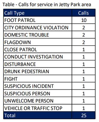 During the month of August 2024, there were a total of 14 FPRA details working for the Jetty Park area There were 25 calls for service during the detail times