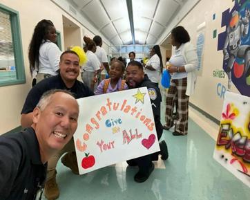 SRO J Goz returned to C A Moore as the School Resource Officer C A Moore and SRO Goz hosted tunnel of hope for the new and returning students The students were given words of encouragement and where cheered on to have a positive and bright 2024-2025 school year.