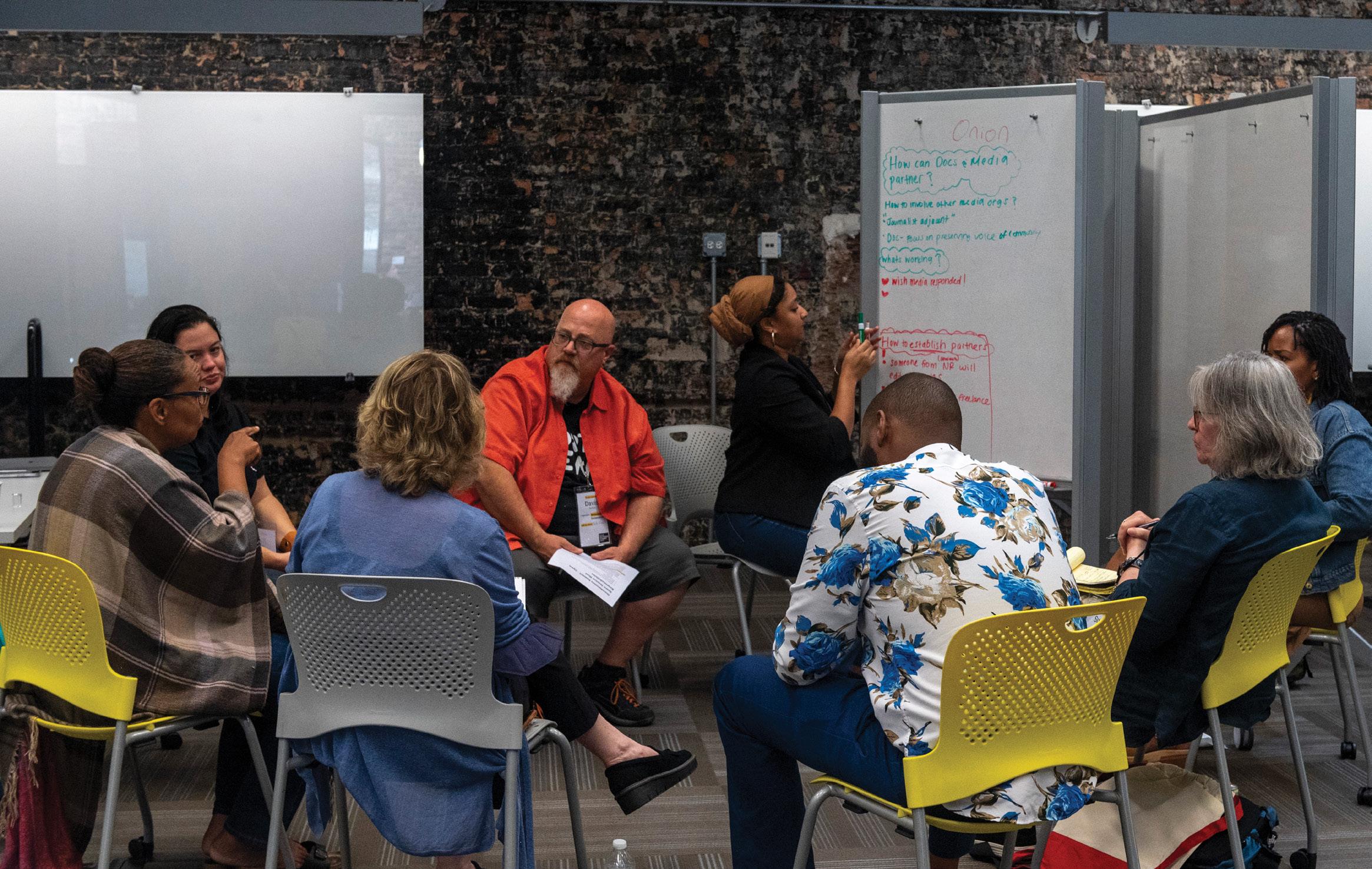 City Bureau staff participate in a breadth of reflective activities and sessions at a recent staff retreat. (Photo: Caroline
