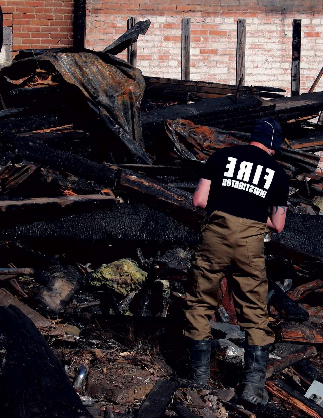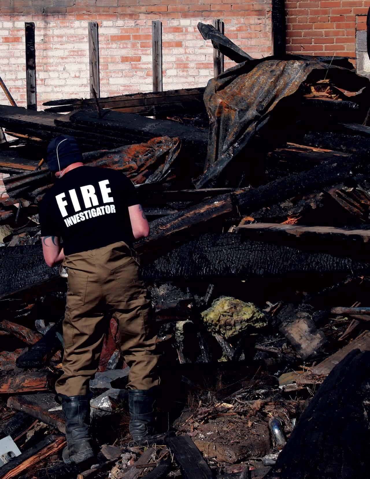 These helmets are worn by our Fire Marshal and Fire Inves-tigators. These are the men and women who help determine fire cause and investigate and collect evidence in arson cases. These people answer to the Incident Command Officer directly.