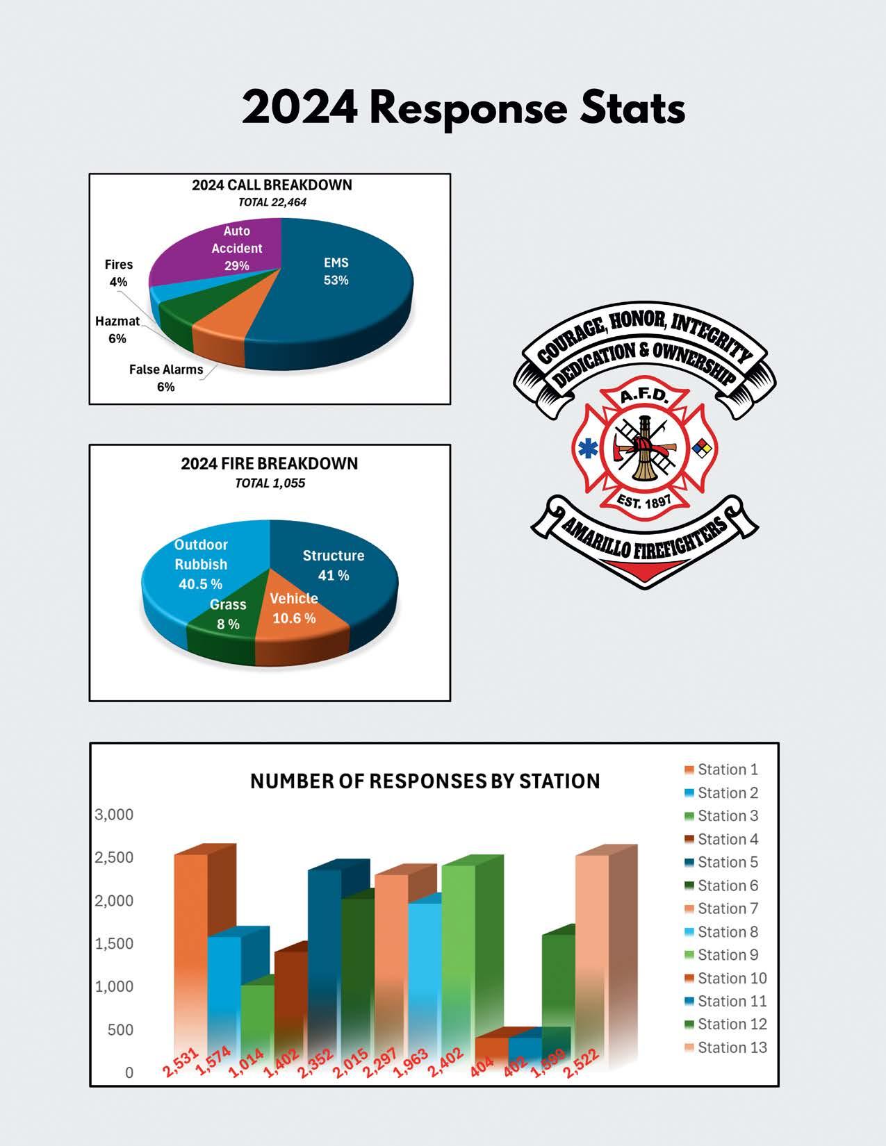It is my honor to present the 2024 Amarillo Fire Department Annual Report. This year, our firefighters responded to 22,464 calls for service, including 1,055 fires and 14,329 EMS incidents. Every response reflects our unwavering commitment to protecting lives and property in Amarillo.