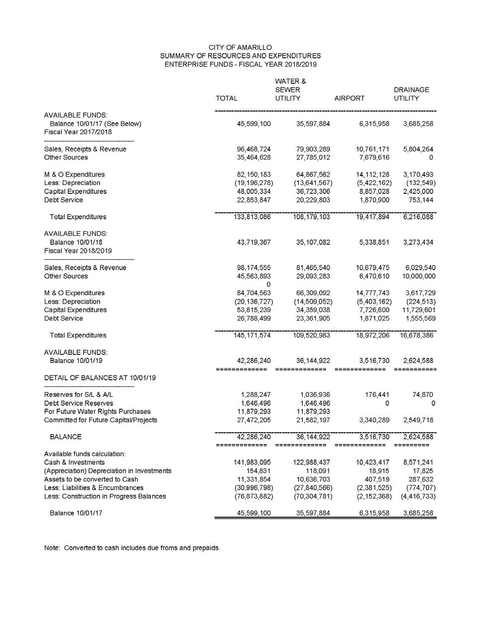 The City of Amarillo is committed to supplying continuous high quality water, sewer and environmental services to our customers in a safe and efficient manner, supporting Amarillo's high quality of life now and in the future. This CIP proposes a large number of projects intended to addressing aging infrastructure and accommodating new development. These projects include new interceptor lines, utility relocations to accommodate Loop 335, treatment plan enhancements, etc. Successful implementation of these projects is reliant upon the continued implementation of a 3% utility rate increase for each of the five years of this CIP.