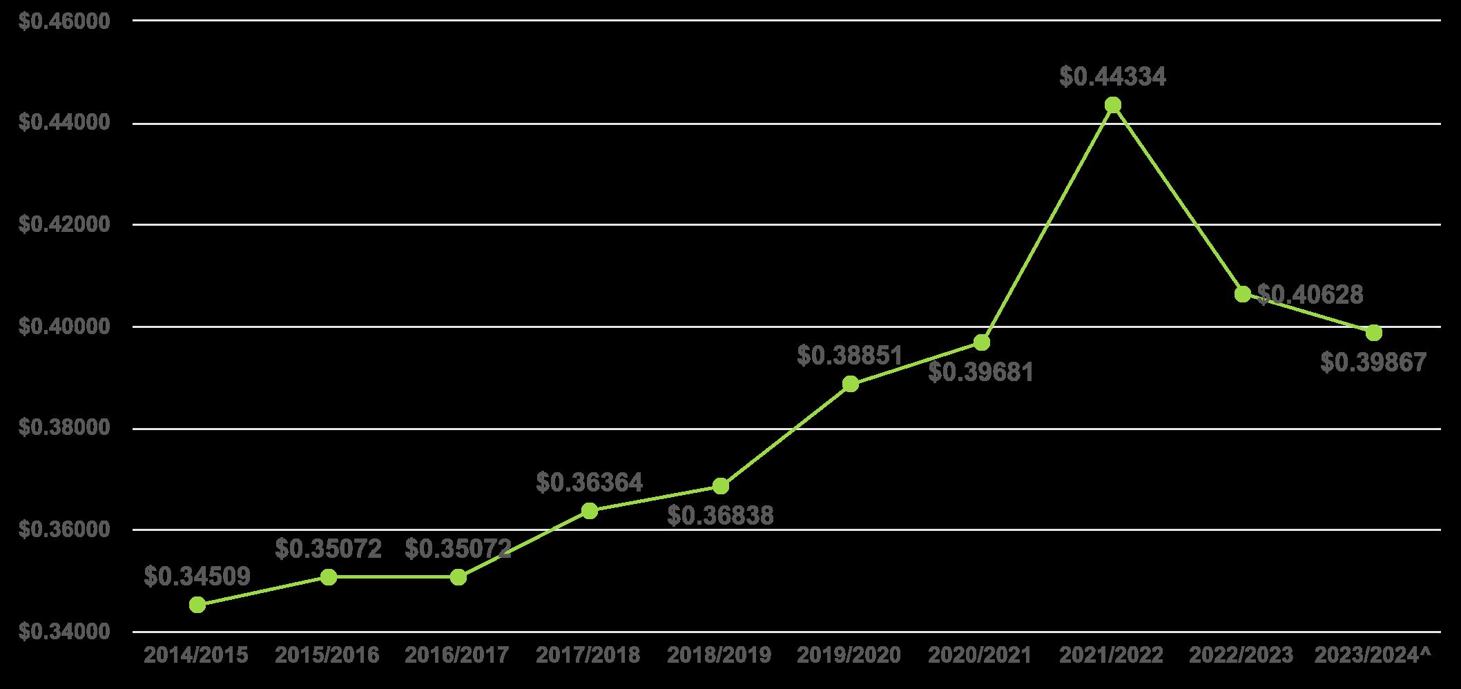 • For FY 2023/24, the no-new-revenue tax rate is $0.37598 per $100 valuation or $0.02269 under the voter-approval tax rate of $0.39867.
