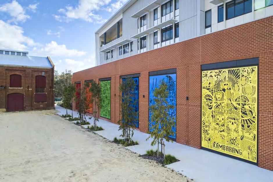 Western Australian artist Paula Hart created Six Seasons for the Stan & Jean Perron Child Advocacy Centre, which houses multiple childre n’s services. The artwork screens add visual interest to the building facade while allowing airflow for the parking garage.