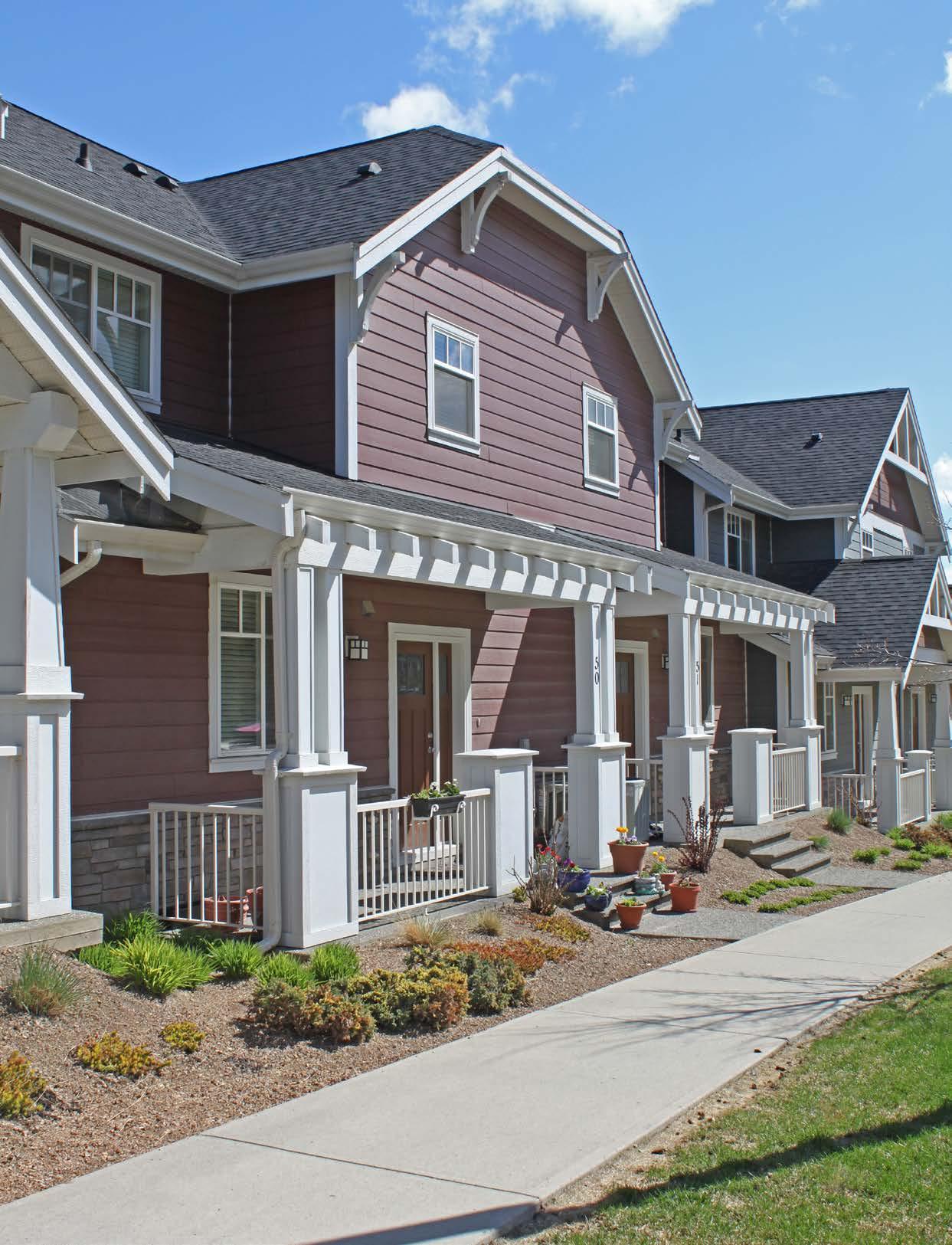 Side-by-side, single-unit dwellings sharing common walls with one or two adjacent units. Each unit is on its own legal parcel with a formal street address and may have its own front and back yard.