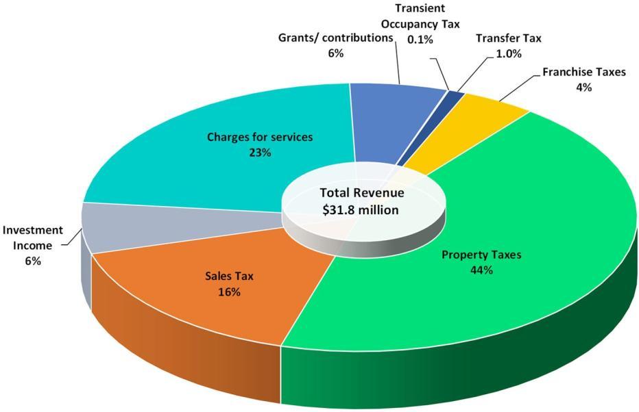 Government-wide Financial Statements are designed to provide readers with a broad overview of City finances, in a manner similar to a private sector business. The City of Orinda’ government wide financial statements include the governmental activities which comprise the City’s most basic functions, such as general government, public works and engineering; park, recreation, and library; planning; and police services. Governmental activities primarily are financed by taxes paid by City residents and businesses and grants from the State of California and the federal government.