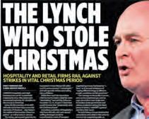 MILITANT RMT bossMick Lynch has told hospitality businesses to direct their anger at rail operators for upcoming strikes which risk decimating Christmas trading.
