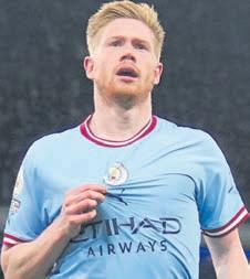 a brace as Manchester City beat Arsenal 4-1 last night in the Premier League to close the gap to their title rivals to just two points. In what many described as the title decider, De Bruyne and John Stones netted before the break before the Belgian midfielder added his second in the 54th minute. Rob Holding scored a consolation goal for Arsenal before Erling Haaland netted his 49th goal of the season in all competitions. City are two points behind the Gunners with two games in hand.