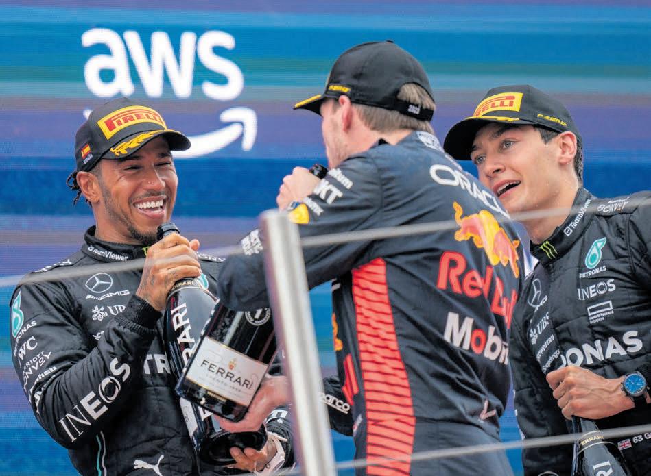 finish in second and third on the podium. Hamilton, who edged his teammate George Russell to second, said: “What a result for our team.