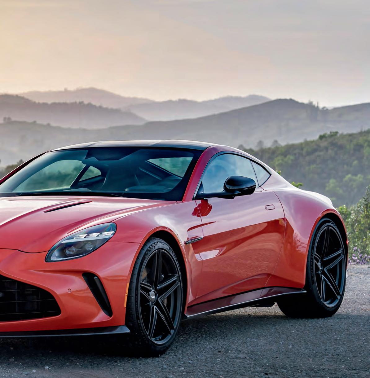 Unlike the more grand-touring DB12, there are no back seats and the dynamic focus is on sport-plus. Which isn’t to say it’s uncomfortable, just pleasingly firm; it’s a wonderful place to sit thanks to its new interior, which takes its cues from the DB12 and the upcoming revamp of the DBX 707. The dark and awkward interior of the previous model has been consigned to the dustbin. The new one is more ergonomic, high-tech and stylish, with some inspiration taken, I’d suggest, from the thirdgeneration Bentley Continental GT, which has been the benchmark for six years now. The sense of occasion that the Vantage’s rakish exterior promises is no longer let down once you climb inside. The new infotainment system, designed in-house, is also a giant leap for Astonkind.