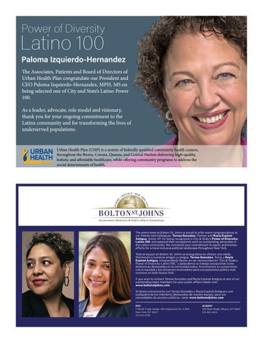 Paloma Izquierdo-Hernandez The Associates, Patients and Board of Directors of Urban Health Plan congratulate our President and CEO Paloma Izquierdo-Hernandez, MPH, MS on being selected one of City and State’s Latino Power 100. As a leader, advocate, role model and visionary, thank you for your ongoing commitment to the Latinx community and for transforming the lives of underserved populations.