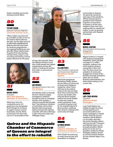 Vice President, Community and Government Relations Montefiore Health System Behind the gargantuan Montefiore Health System lies the Office of Community & Government Relations headed by Lilliam Perez. With ties to the political world on the city and state level, Perez schmoozes the movers and shakers that bring the Bronx hospital network the funds needed to keep that medical center operational. Perez is unafraid of going to bat for the hospital beyond its Bronx borders, justifying their decision-making to the community writ large.