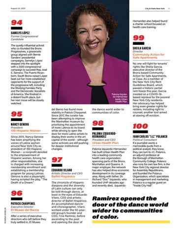 Former Congressional Candidate The quietly influential activist who co-founded the Bronx Progressives, a grassroots group aligned with Bernie Sanders’ presidential campaigns, Samelys López stepped into the spotlight with a 2020 congressional campaign to succeed Rep. José E. Serrano. The Puerto Ricanborn, South Bronx-raised López beat out her more established opponents for the support of the progressive left, including the Working Families Party and the Democratic Socialists of America. She finished in a distant fourth place, but her next move will be closely watched.