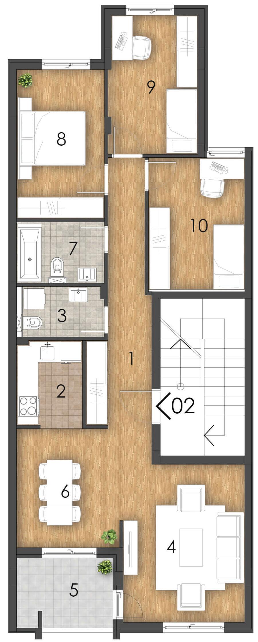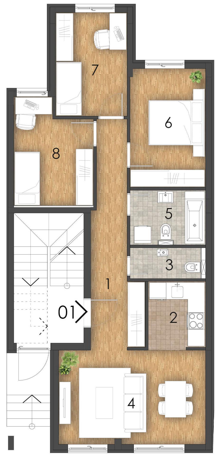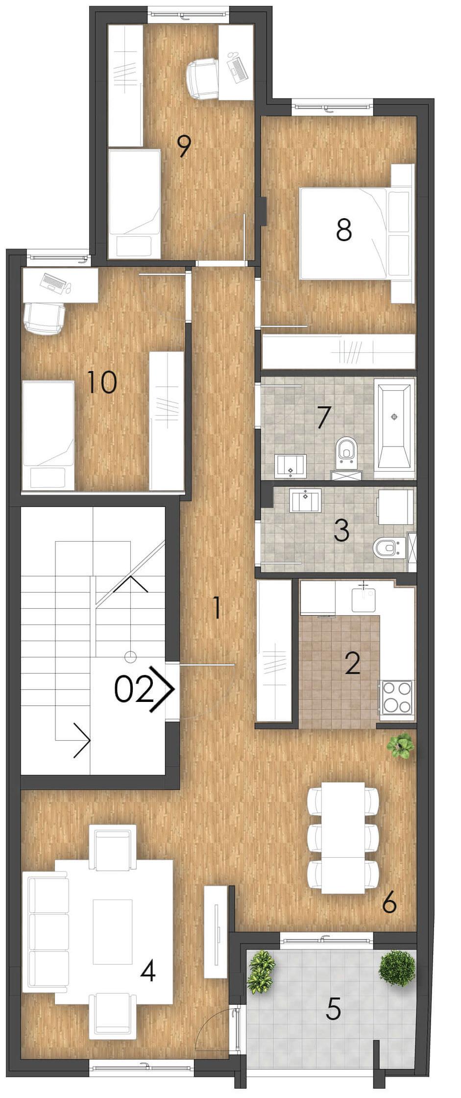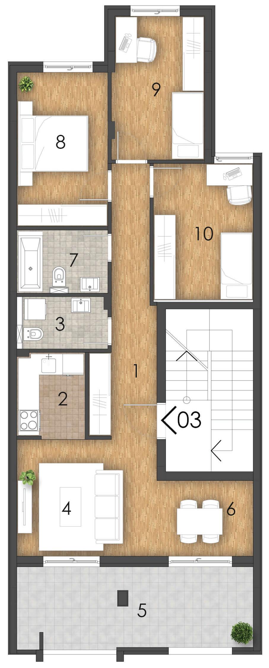• Grejanje je podno, vlastiti kotao Bosch i gasno brojilo u svakom stanu