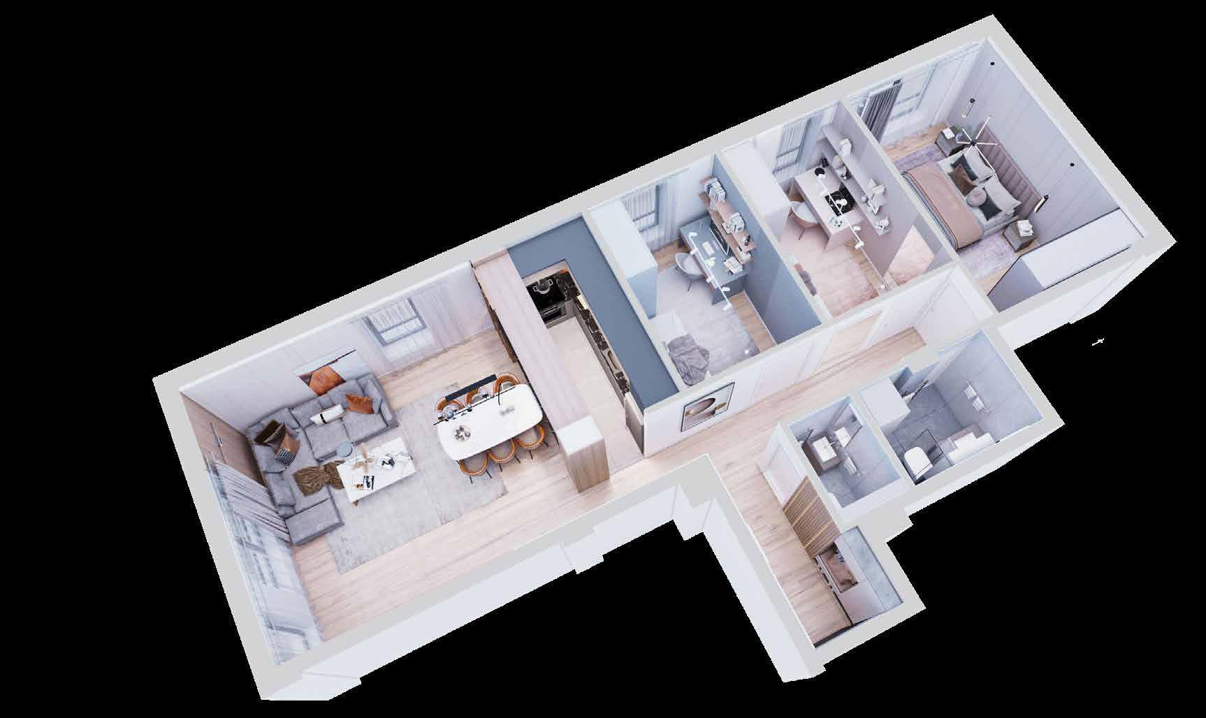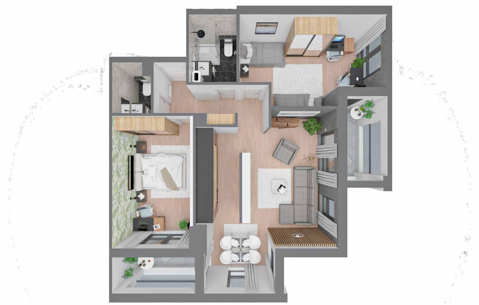 Stambeni kompleks poseduje 48 stanova kvadrature od 33 m² do 76 m². Kompleks poseduje i rampu za osobe sa posebnim potrebama, interfon, alarm i lift. Svaki stan projektovan je tako da su sve prostorije dobro organizovane i osvetljene.