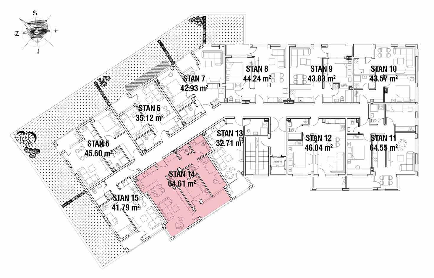 44 m², 45 m², 49 m², 64 m², 72 m², prizemlje, svi spratovi