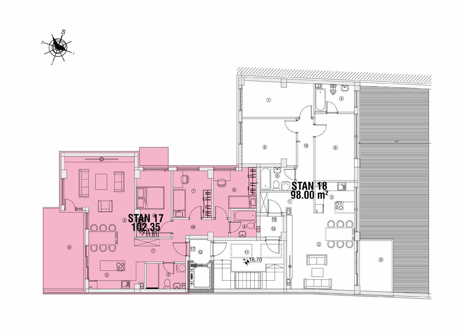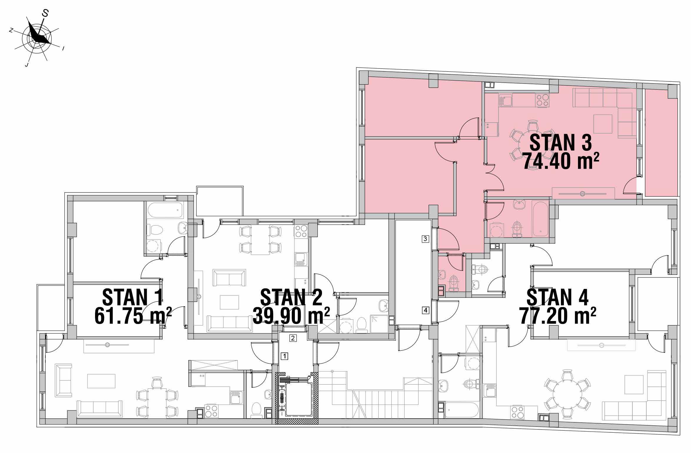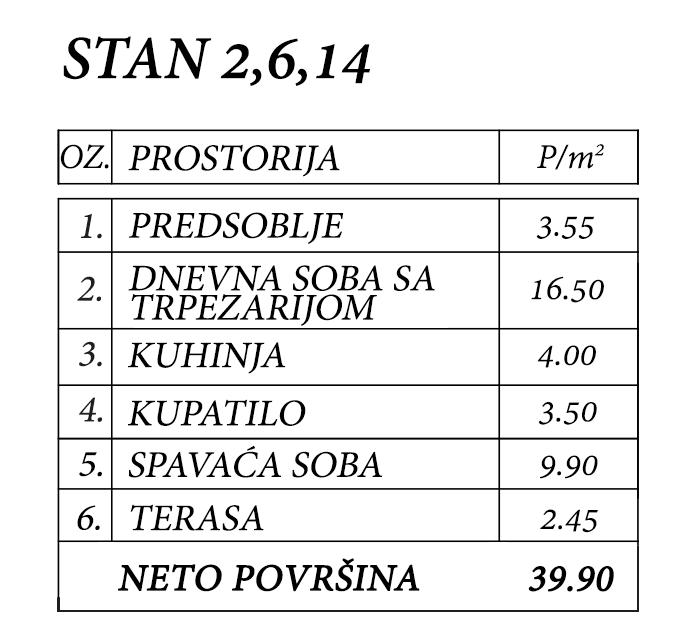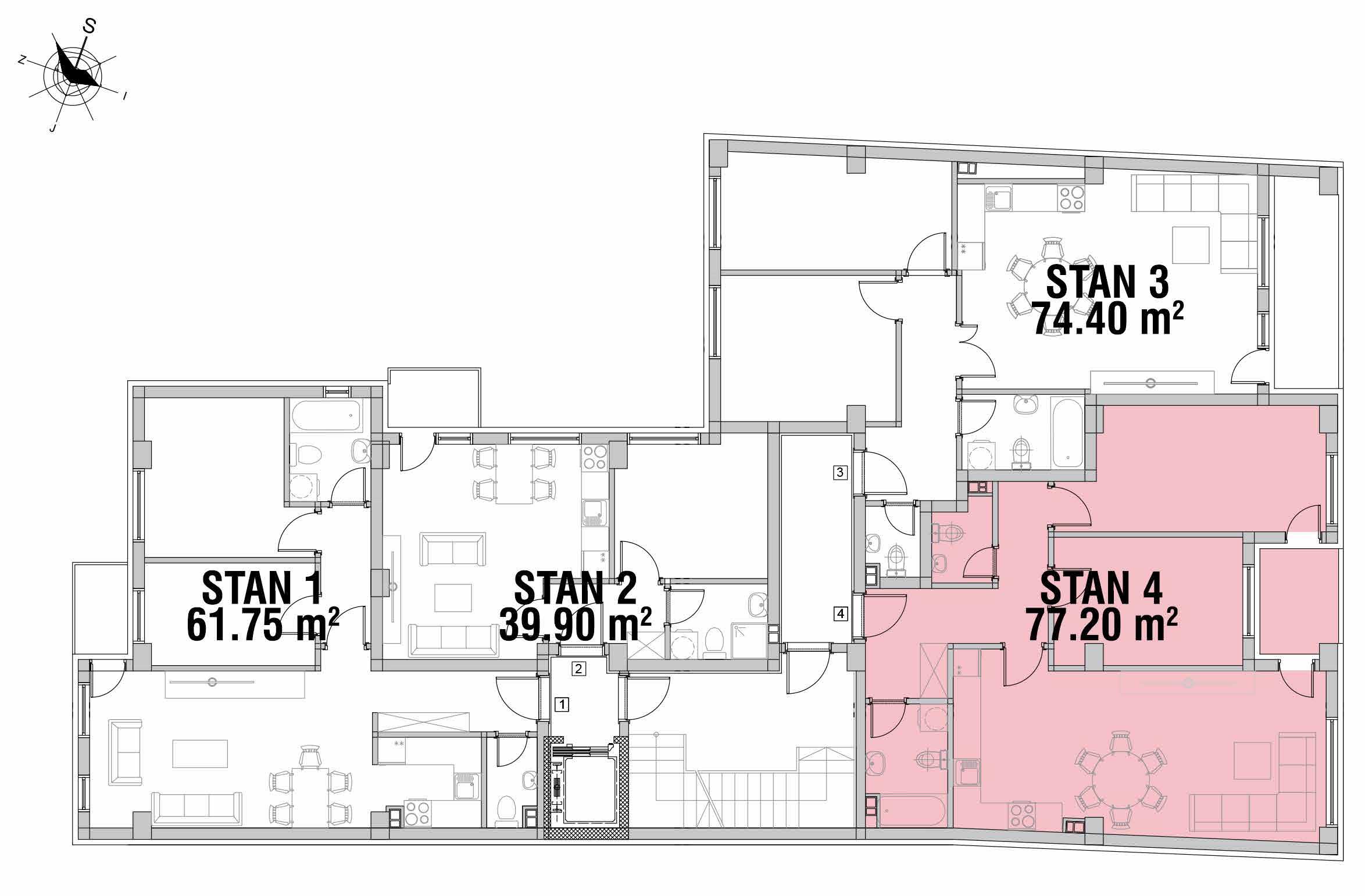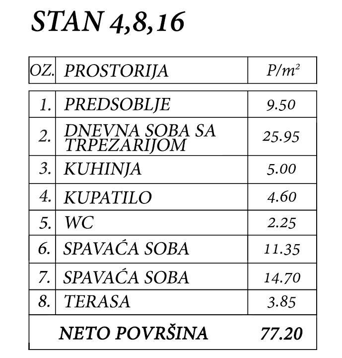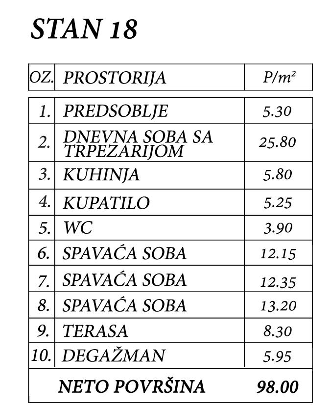 Stanovi su namenjeni kako samcima, tako i porodičnim ljudima, a kvadratura stanova je od 39 do 102 m². Kompleks poseduje 18 stanova, od kojih je slobodno 14 stanova različitih kvadratura, dok se na poslednjem spratu nalaze dva luksuzna penthausa, sa velikim zelenim površinama i prelepim pogledom na Niš. Stambeni kompleks „Tankosić oaza” gradi se od najkvalitetnijih materijala, a moderan dizajn i zeleni krov izdvaja ovaj projekat od drugih.
