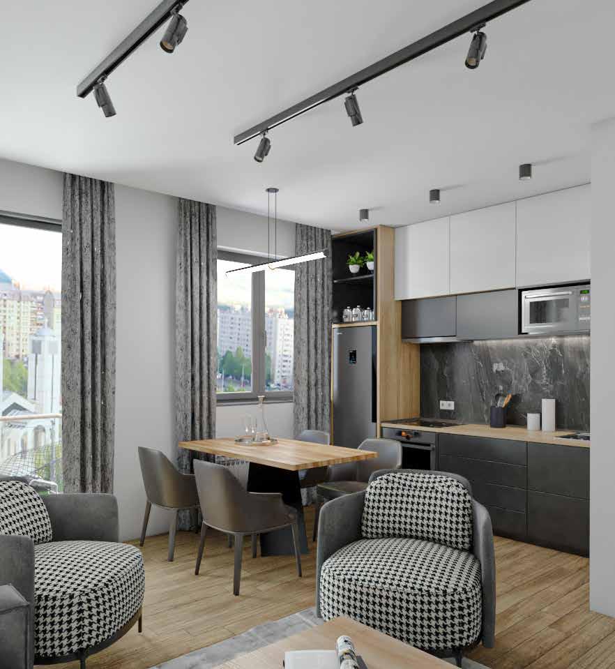 Svi fasadni zidovi urađeni su od kvalitetnih termo blokova, poboljšanih termičkih karakteristika, a između stanova se zidaju otežanim blokovima. Stanovi su opremljeni za brzu implementaciju smart house sistema i svaki ima ličnu ostavu, koja ulazi u cenu. Svi stanovi imaju čistu visinu od 2,7 metara, a ceo objekat obezbeđen je kamerama na svim ulazima, kojima je moguće pristupiti preko mobilnog telefona. Zgrada će imati i interfon, a rasveta će biti senzorska.